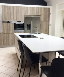 Du granit dans la cuisine, mobilier sur mesure, jeu de matières premières, cuisines Marrec, Pont Aven